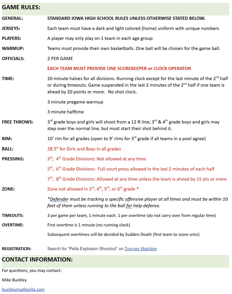 Pella Explosion Shootout Rules